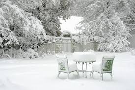 Σκεπάζει το γρασίδι, / τα πλακάκια, /τις πολυθρόνες του κήπου.